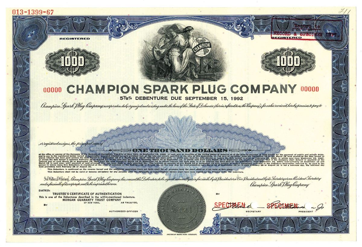Champion Spark Plug Company Specimen Registered Bond - 1967